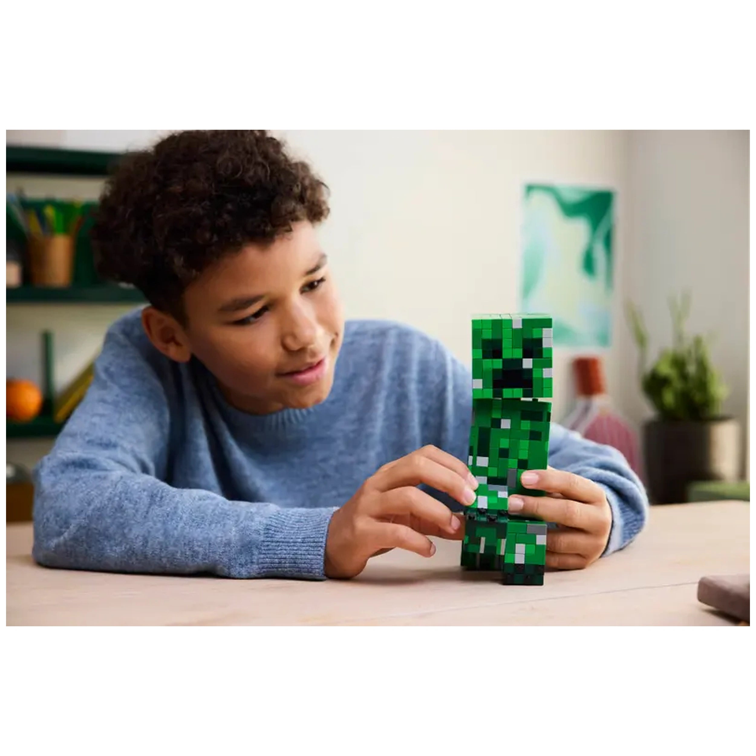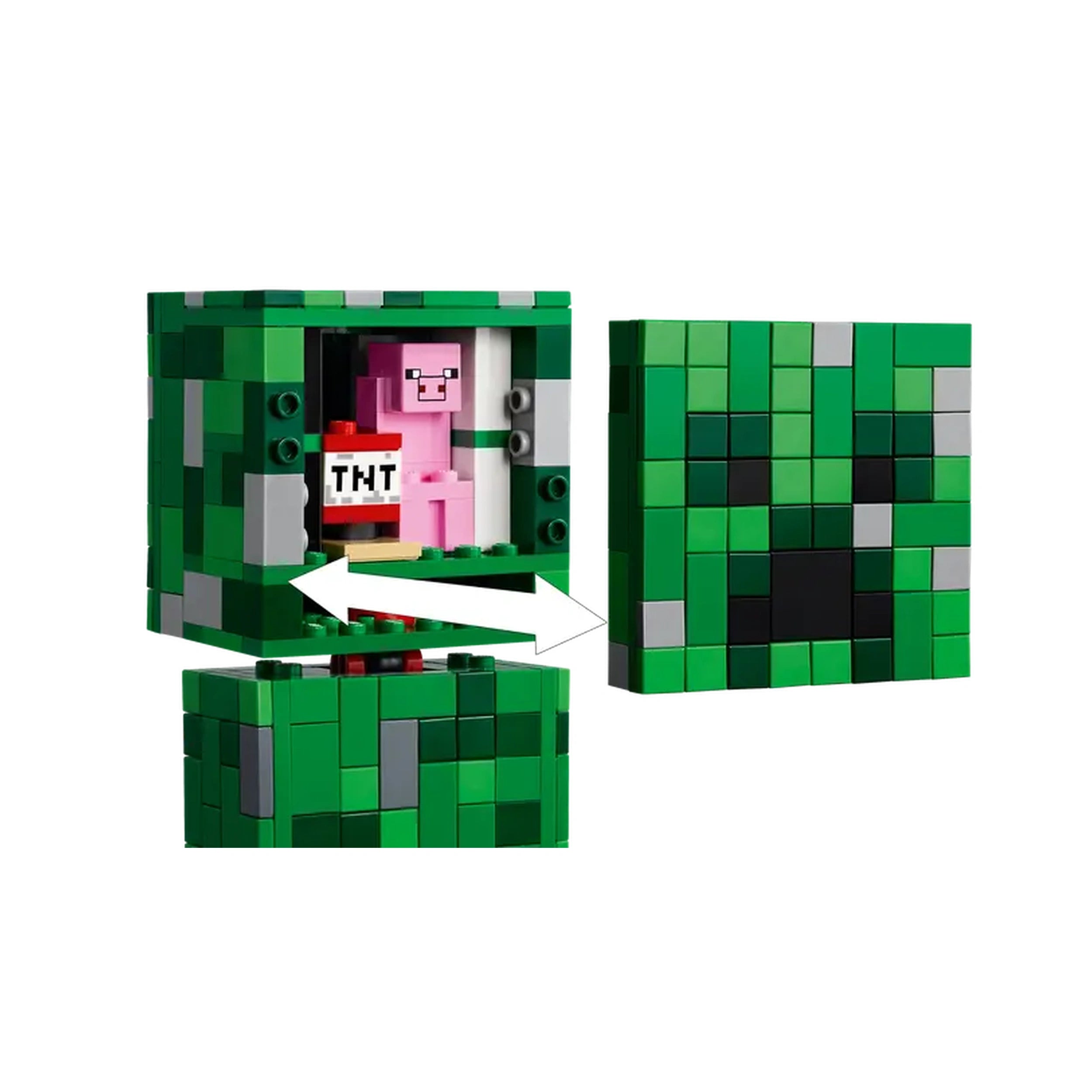 One of the standout features of this construction set is the hidden surprise within the Creeper’s head. When kids detach the front of the figure, they will discover an interior space that houses a first-version Creeper minifigure and a TNT element. This interactive aspect adds an extra layer of fun and excitement, encouraging imaginative play as children recreate their favorite Minecraft scenarios or invent new adventures.