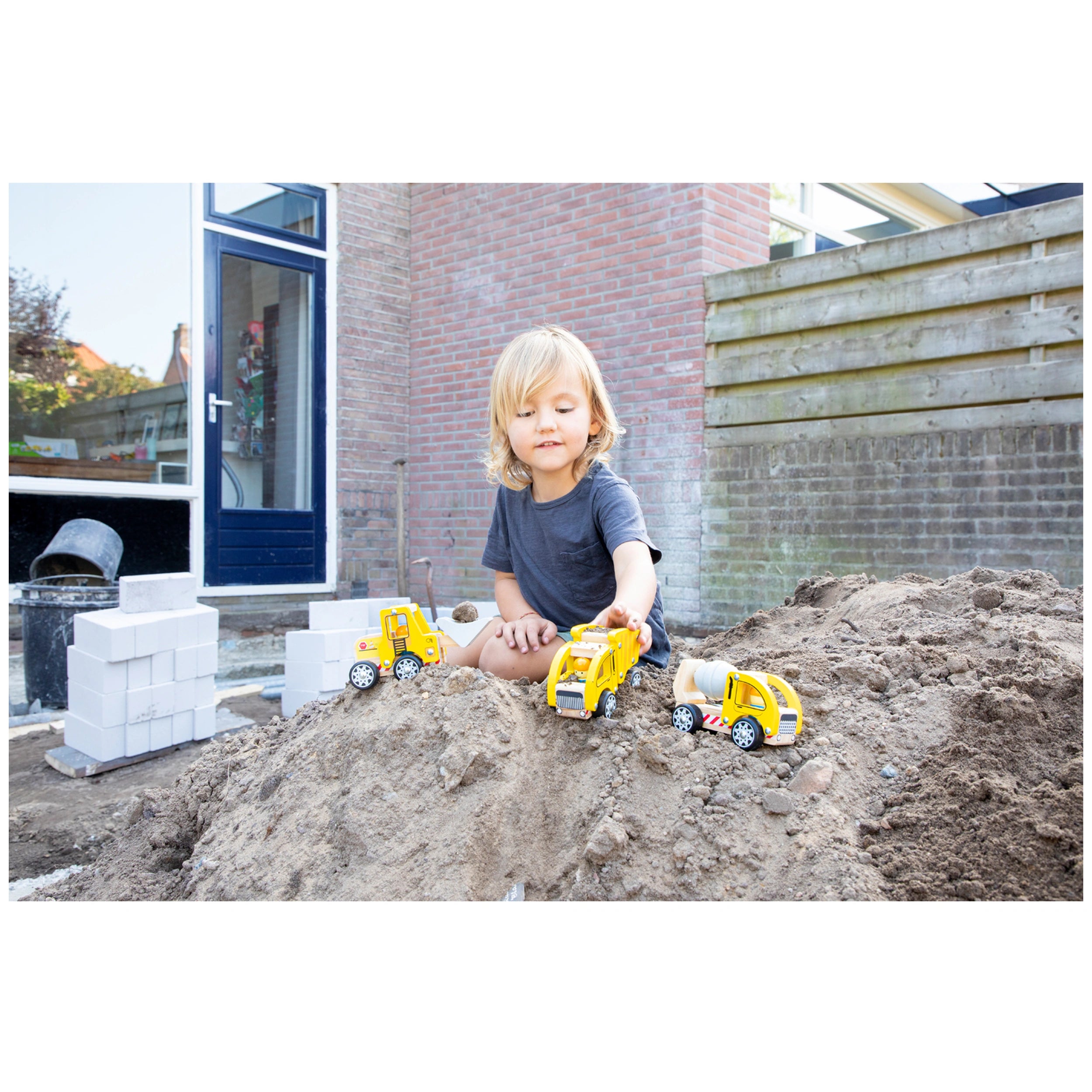 Completing the set is the cement truck, a vital vehicle in any construction operation. With its rotating drum, children can simulate the mixing and pouring of concrete, bringing their building projects to life. This vehicle encourages kids to think about the processes involved in construction, fostering an early interest in engineering and architecture. The cement truck's design is both engaging and educational, making it a favorite among young builders.