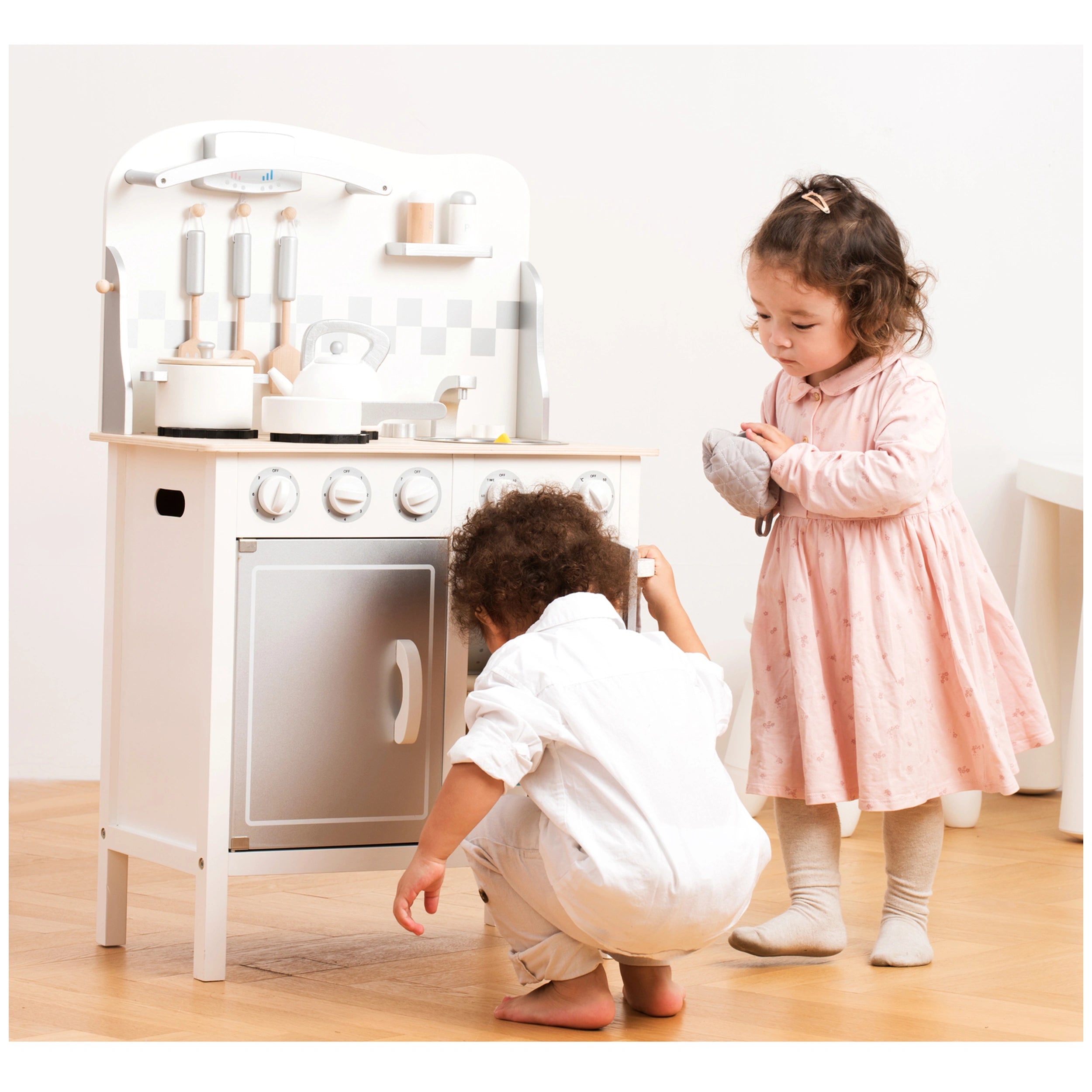 The New Classic Toys Kitchenette Deluxe comes complete with essential cooking accessories, including a kettle, a pot with a lid, a frying pan, three cooking utensils, an oven glove, a towel, and a salt and pepper pot. Each item is designed to enhance the play experience, encouraging children to mimic real-life cooking scenarios. This attention to detail ensures that every meal prepared in this kitchen is a delicious adventure, fostering creativity and problem-solving skills.