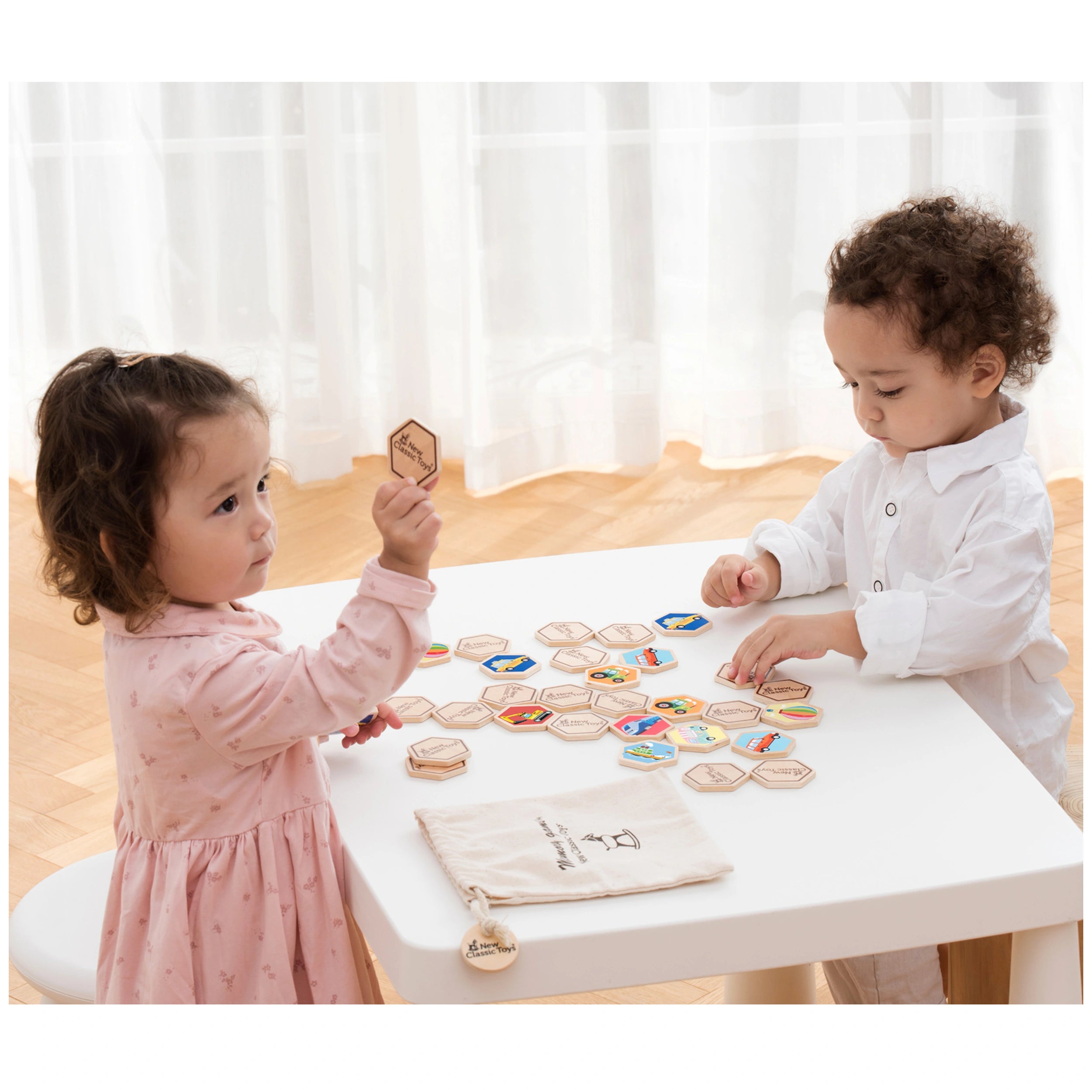 Introducing the New Classic Toys Memory Game - Vehicles, a delightful board game designed to bring families and friends together while enhancing cognitive skills. This charming wooden memory game is not just a source of entertainment; it serves as an engaging educational tool that promotes fine motor skills, problem-solving abilities, and memory training. Crafted with care, this game is perfect for children and adults alike, making it an ideal addition to any game night or family gathering.