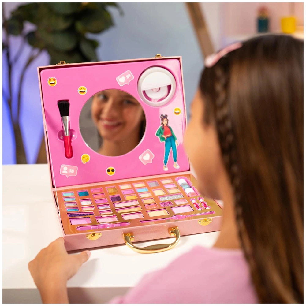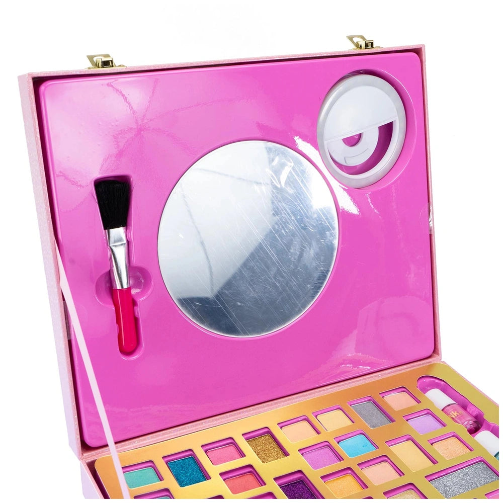 The Nice - Pink it Selfie Ring Suitcase is equipped with an impressive array of makeup products, ensuring that you have everything you need to create stunning looks. Inside, you will find a selfie ring flash that easily attaches to your smartphone, allowing you to capture flawless selfies with perfect lighting. This feature is particularly beneficial for those who love to share their makeup creations on social media, ensuring that every photo showcases your artistry in the best light.
