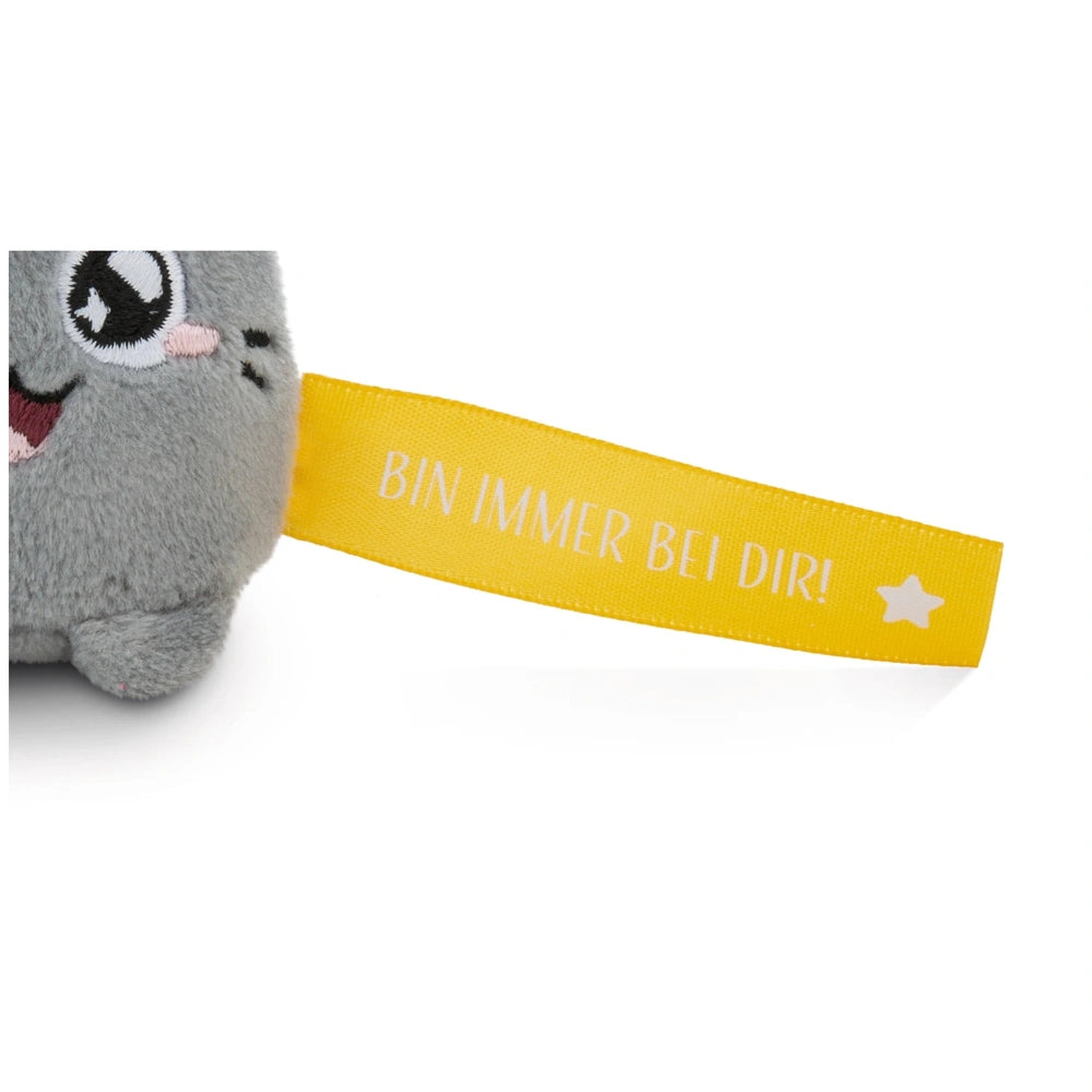 Introducing the NICI Keyholder Yellow Cat "Bin immer bei dir!" – a delightful accessory that combines charm and sentimentality in one adorable package. This plush kitten, with its soft grey fur and enchanting guardian angel wings, is designed to bring joy and comfort to anyone who encounters it. The prominent message "Bin immer bei dir!" is beautifully displayed on a vibrant yellow banner, making it not just a keyholder but a heartfelt reminder of companionship and support.