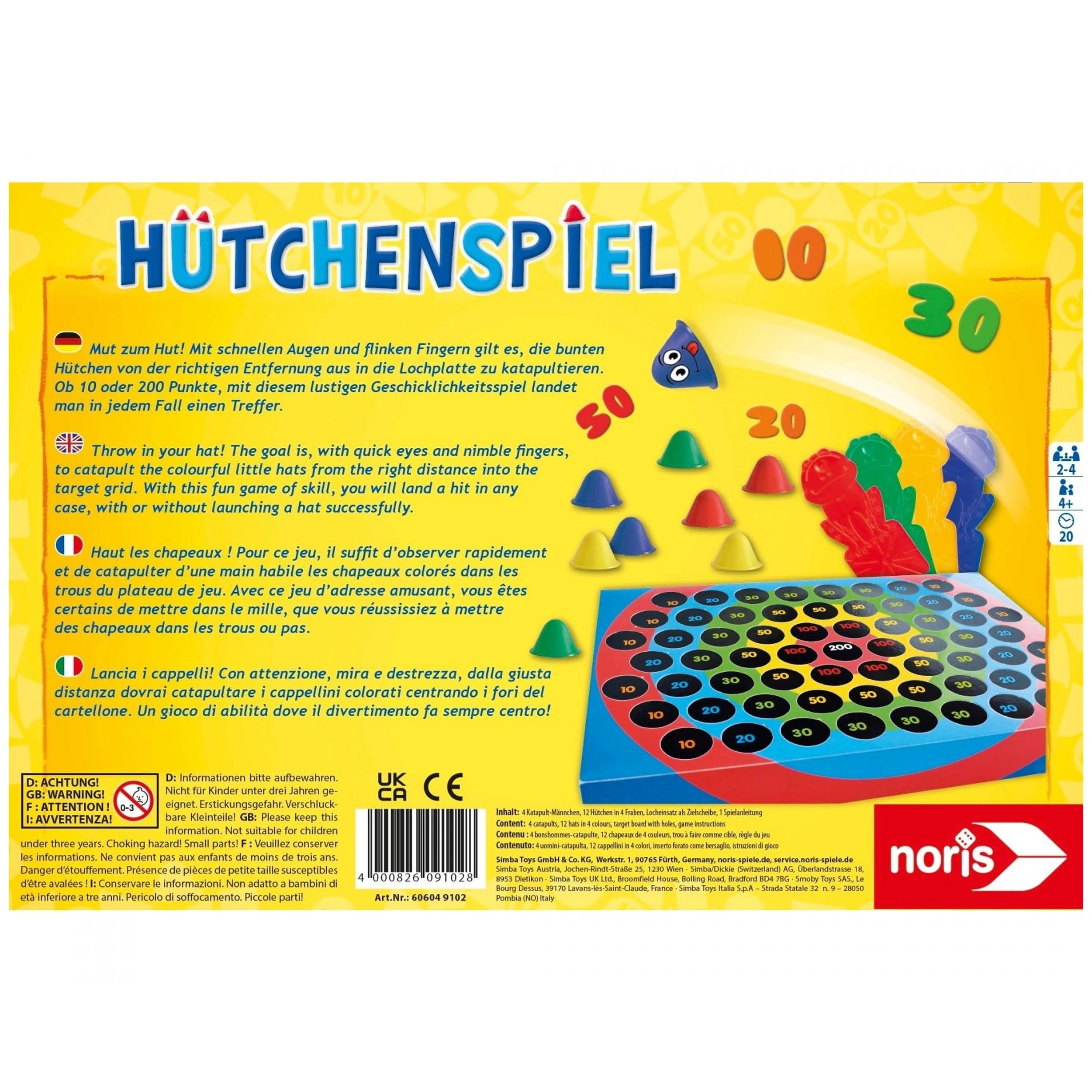 The Noris Shell Game includes everything you need for a thrilling experience: four catapults, twelve caps in four vibrant colors, a target board, and a comprehensive game manual. The objective is simple yet captivating: players must launch their caps with accuracy and agility, aiming to land them in the scoring zones. As the game progresses, the tension builds, and players must strategize to outscore their opponents. The combination of skill and competition makes this game a must-have for any board game enthusiast.