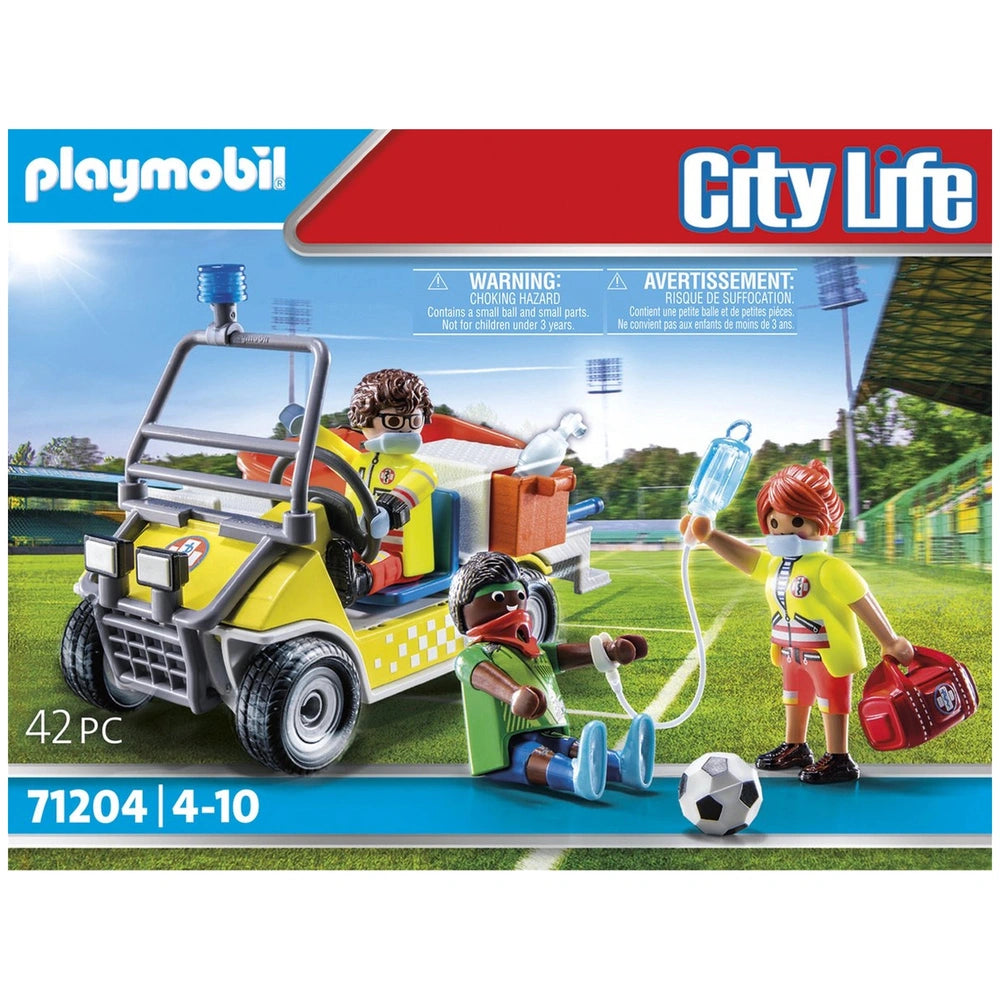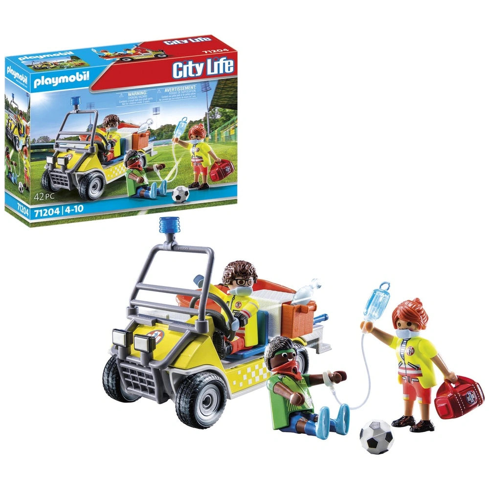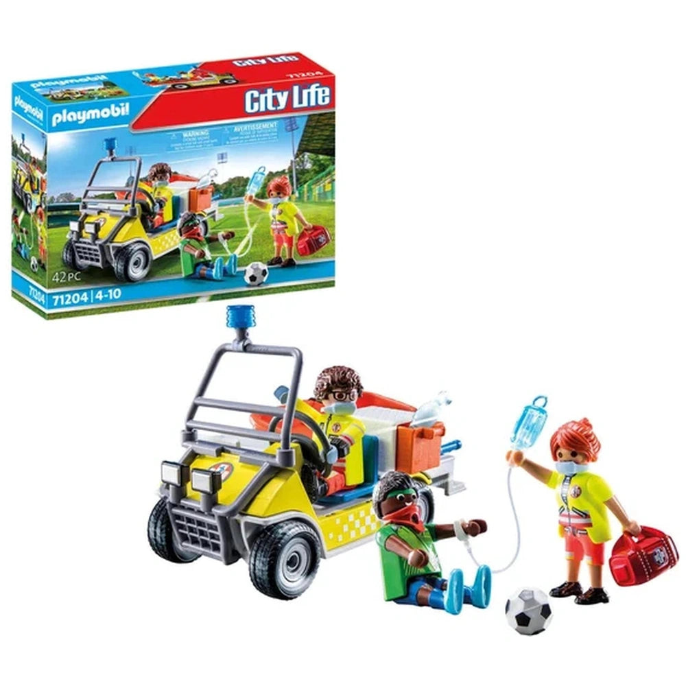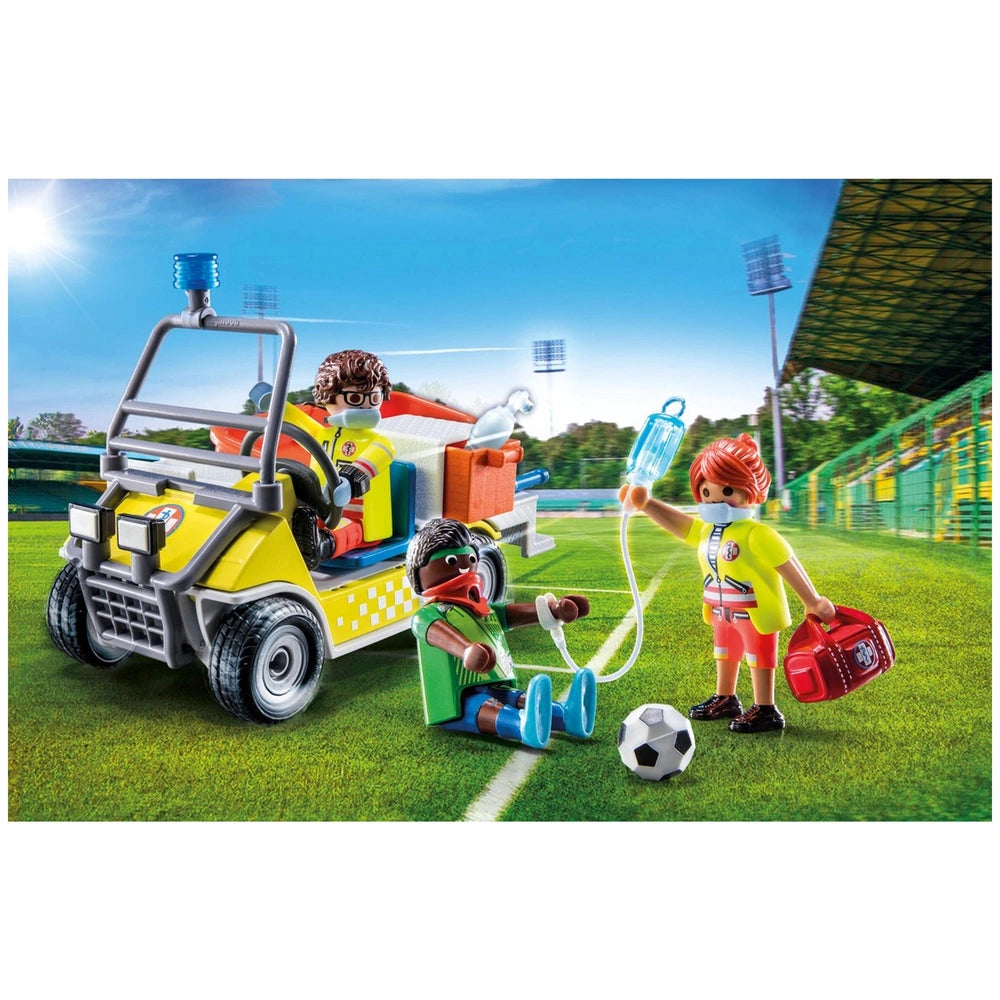 The Playmobil City Life Rescue Truck is equipped to handle any emergency situation, making it an essential addition to your child's toy collection. The agile vehicle can swiftly navigate through rough terrain, ensuring that help arrives promptly at the scene of an accident. In this particular scenario, the rescue team rushes to a football field where a player has sustained a neck injury. The attention to detail in this set allows children to understand the importance of quick and careful response in emergencies, as they role-play the rescue operation.