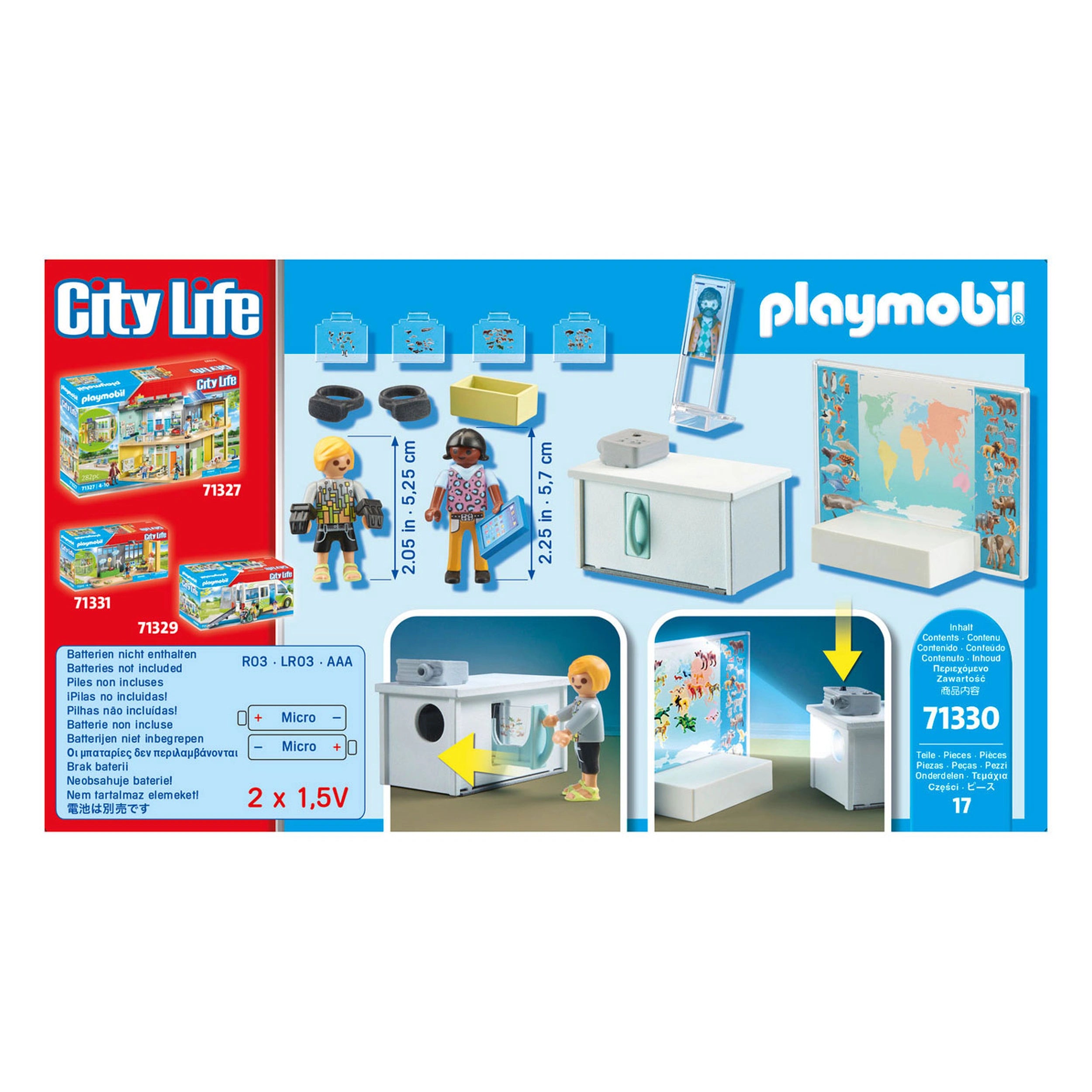 The Playmobil City Life Virtual Classroom features a sleek and contemporary design that reflects the modern educational environment. Equipped with a working projector, this set allows children to project images onto the screen, simulating a real classroom experience. The projector adds an element of realism and excitement, making lessons come alive as kids engage with the content in a fun and dynamic way. This feature not only enhances playtime but also encourages children to think critically about technology and its applications in learning.