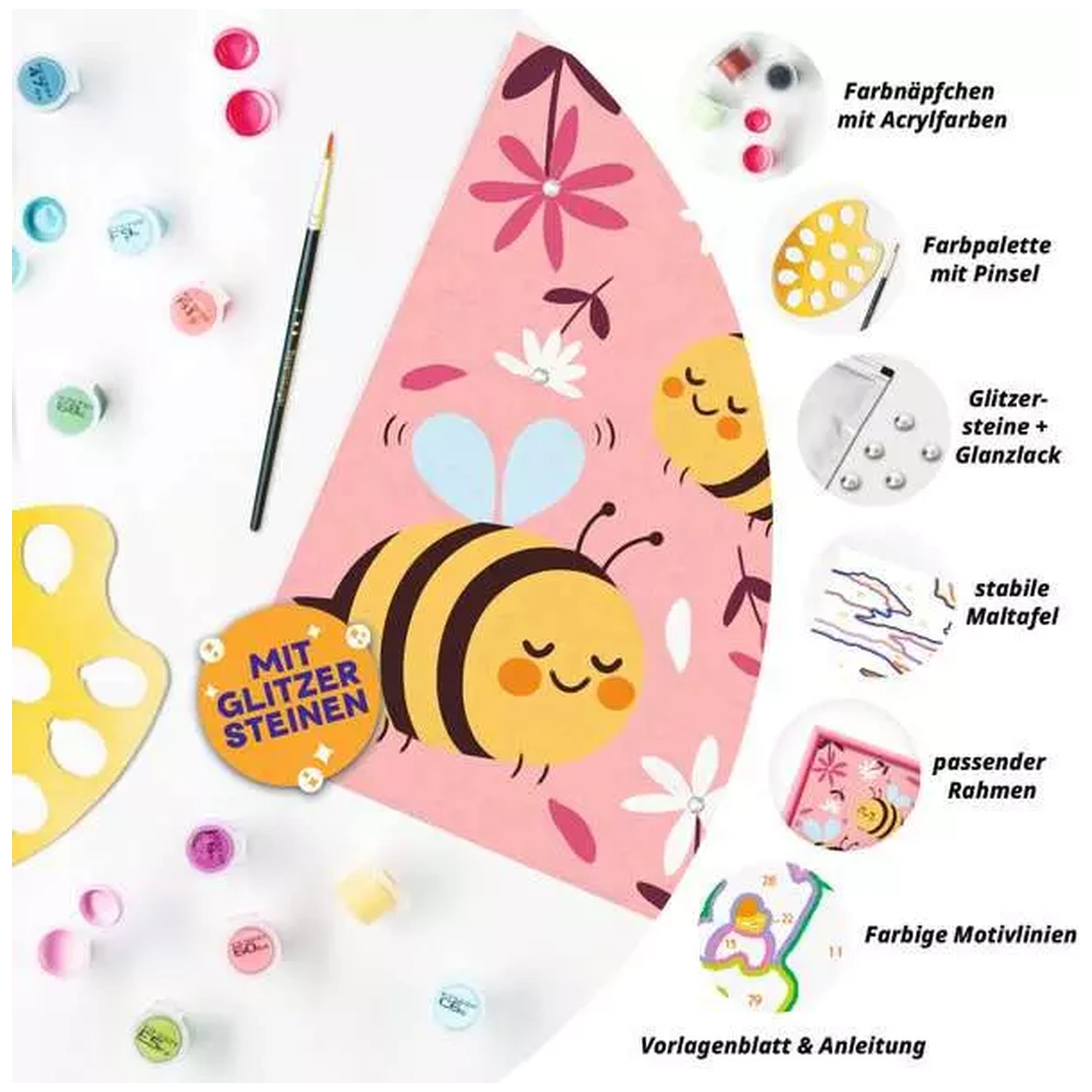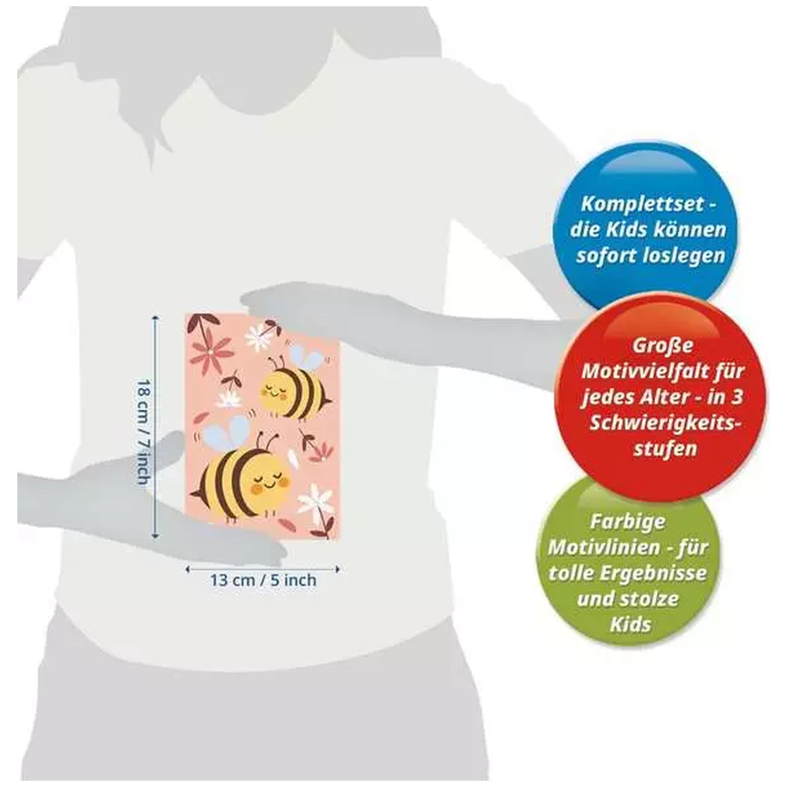 The Cute Bumblebees design is thoughtfully crafted with varying levels of difficulty, catering to both beginners and more advanced young artists. This tiered approach allows children to progress at their own pace, starting with simpler images and gradually moving on to more intricate designs. This flexibility makes the CreArt set an excellent choice for group activities, art classes, or individual projects, as it can accommodate a wide range of skill levels and artistic preferences.