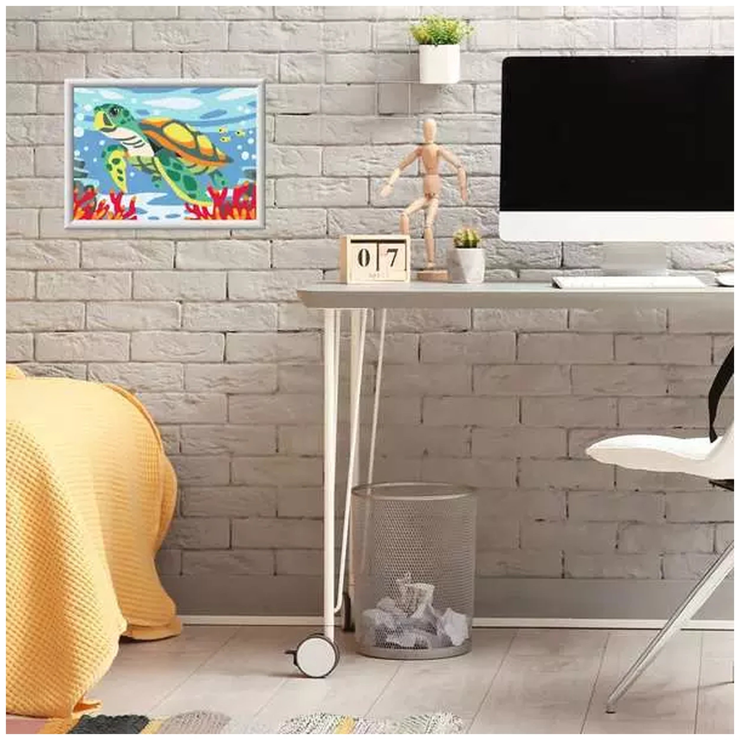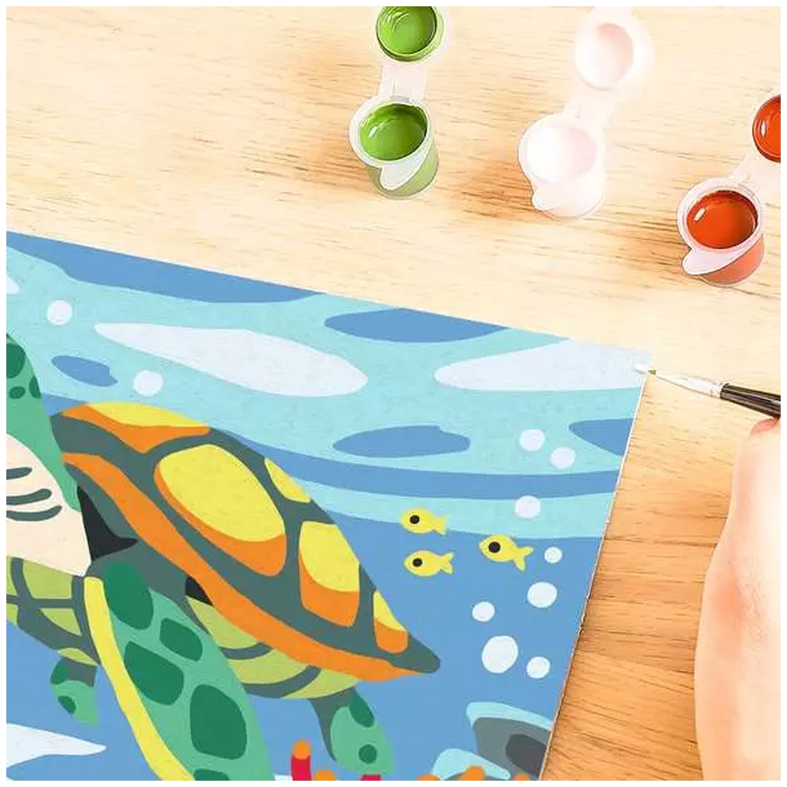 One of the standout features of this painting kit is its structured approach to learning. The Sea Turtle design is presented in three difficulty levels, catering to both beginners and more advanced young artists. This thoughtful progression allows children to start with simpler images that have larger painting areas and gradually move on to more intricate designs with smaller sections. This method not only enhances their painting skills but also boosts their confidence as they see their abilities improve.
