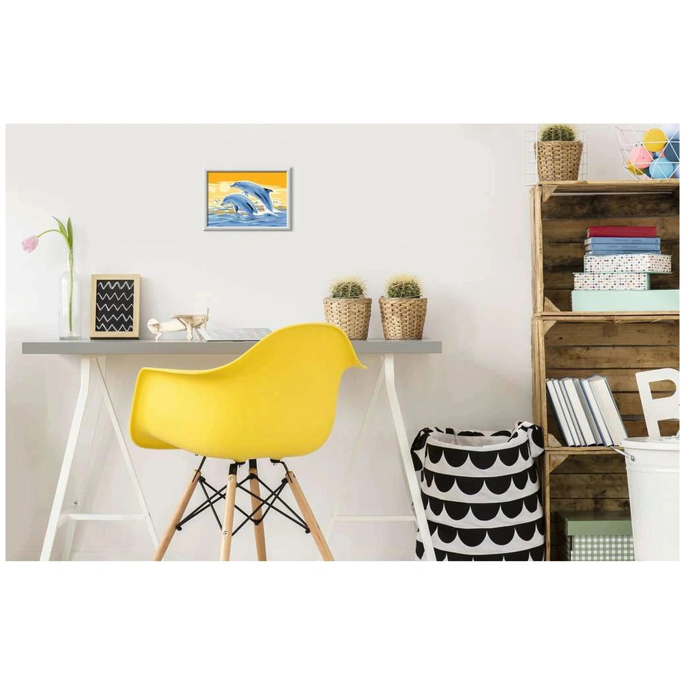The CreArt Delightful Dolphins set includes everything you need to embark on your artistic journey. Inside the package, you will find a high-quality painting panel, a selection of vibrant, water-based acrylic paints in resealable pots, a fine brush, and a frame to showcase your finished artwork. The clear, numbered sections on the painting panel guide you through the process, ensuring that you achieve a beautiful result with minimal effort. This user-friendly approach makes it accessible for children and adults alike, fostering creativity and artistic expression.