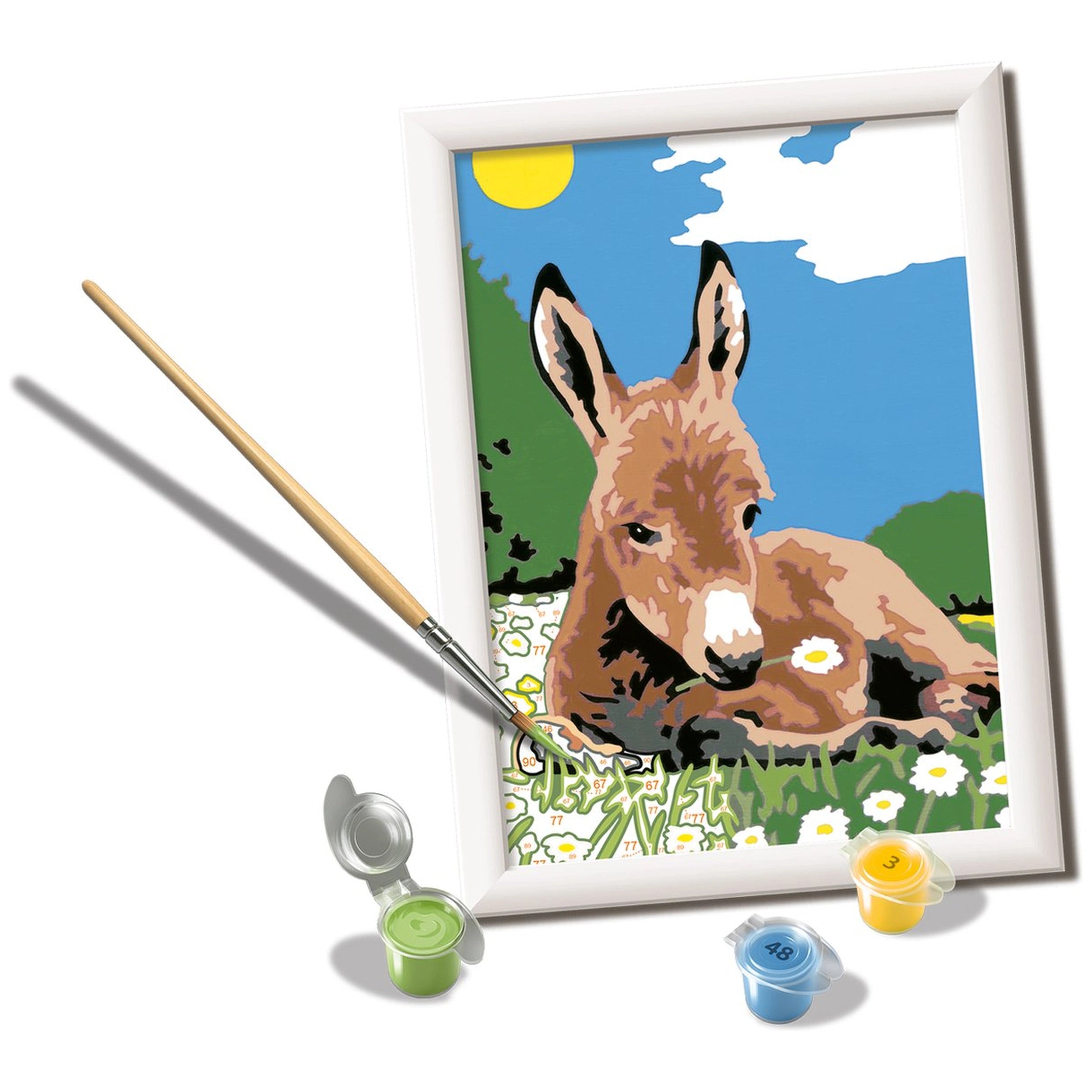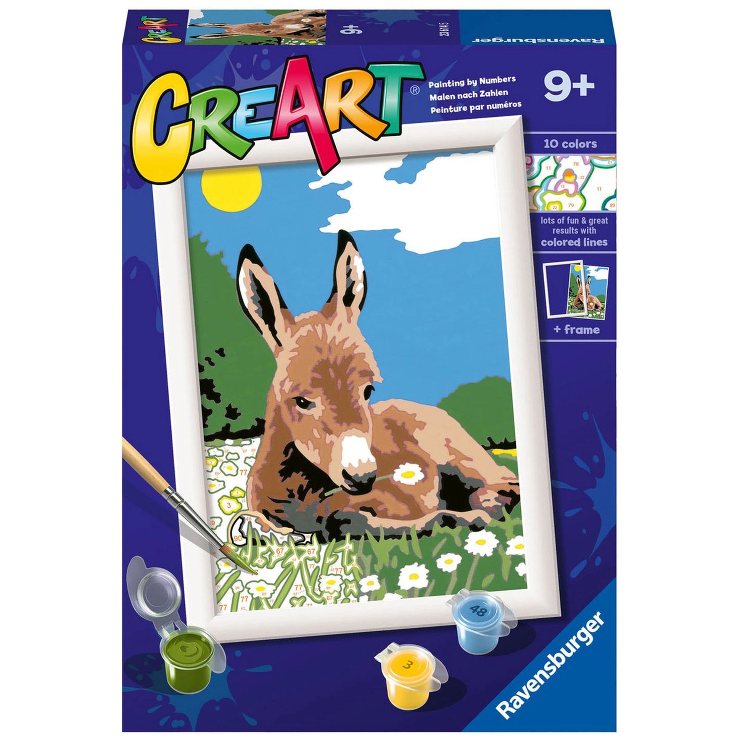 Introducing the Ravensburger CreArt Little Donkey Painting By Numbers set, a delightful arts and crafts experience designed to awaken the artist within everyone. This engaging painting kit is perfect for both beginners and seasoned artists, offering a unique opportunity to create a beautiful masterpiece with ease. With its user-friendly approach, this set encourages creativity and self-expression, making it an ideal choice for children aged 9 and above.