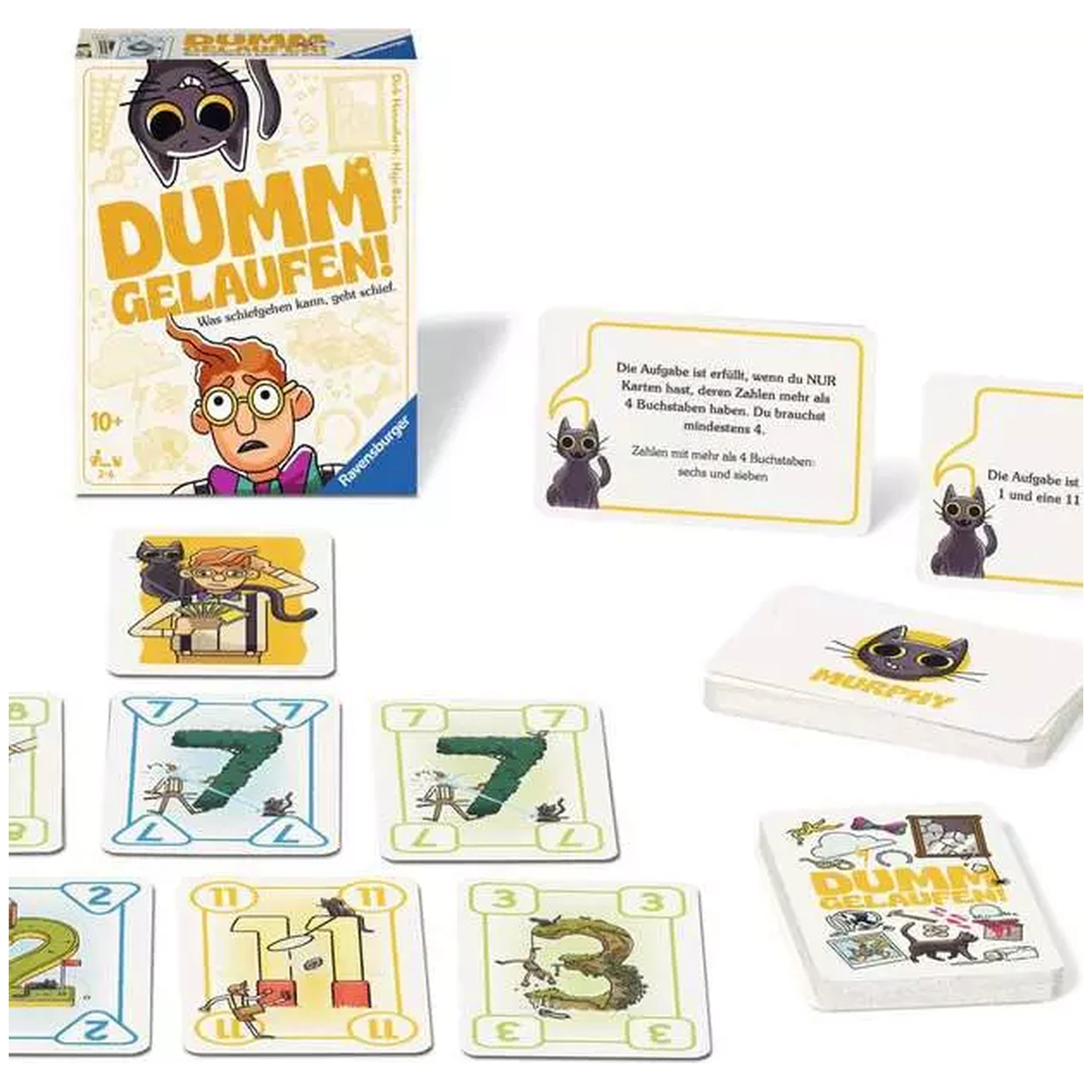 The game features a fictional character, Mac, and the mischievous black cat, Murphy, who adds an extra layer of fun and unpredictability to each round. With the introduction of 10 new Murphykarten, players can expect fresh challenges and scenarios that keep the gameplay dynamic and engaging. The combination of strategy and chance makes Dumm Gelaufen! a game that appeals to both young and old, providing hours of entertainment.