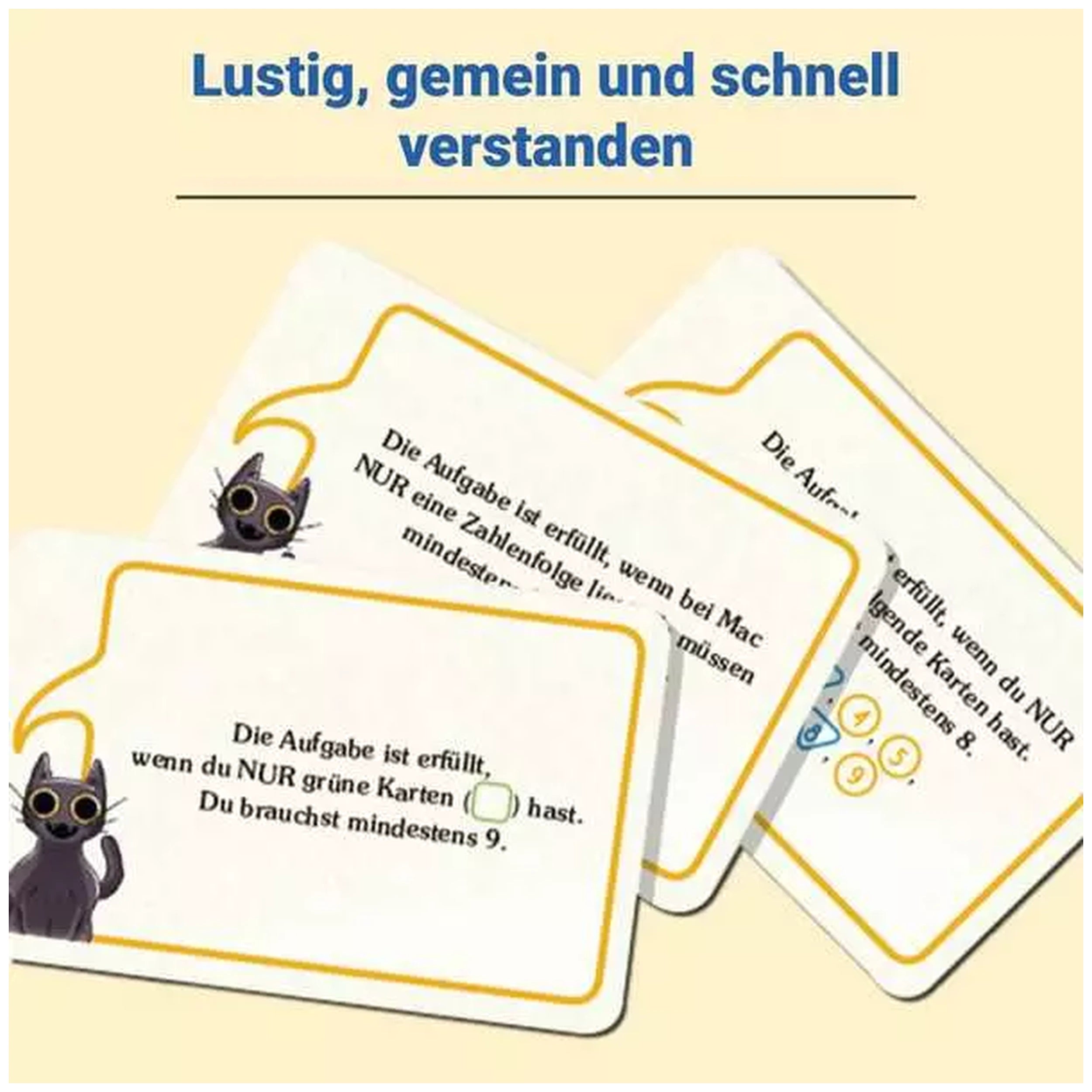 In Dumm Gelaufen!, players race against each other to complete tasks outlined on the Murphykarten. The challenge lies in the ever-changing requirements, which may call for specific cards like green ones or those numbered 5. Just when you think you're close to victory, a twist of fate may have another player snatching the win right from under your nose. This element of surprise ensures that no two games are ever the same, making it a perfect choice for family game nights or gatherings with friends.