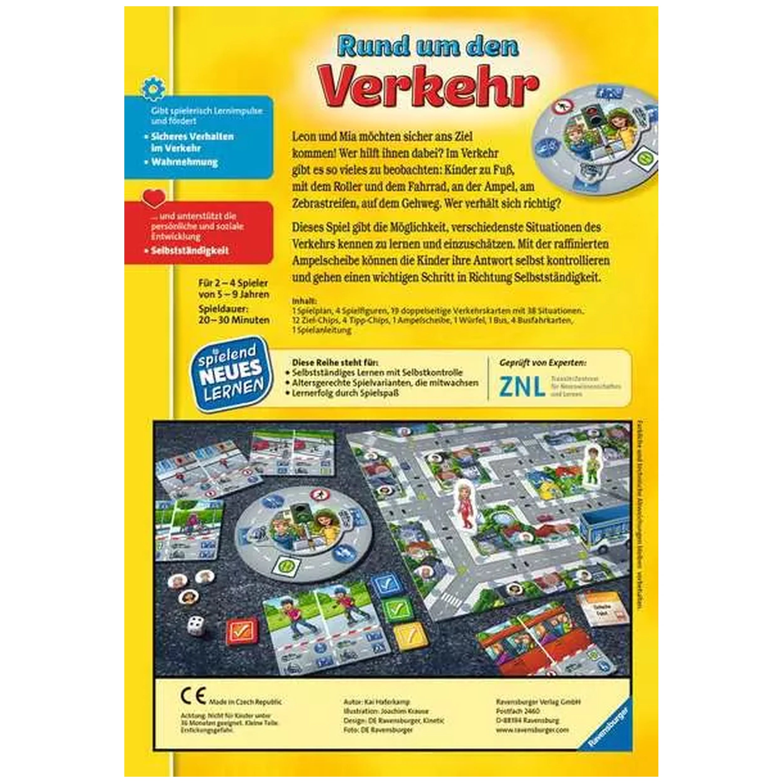 Introducing the Ravensburger - Rund Um Den Verkehr Board Game, a captivating educational tool designed to teach children about traffic safety in a fun and engaging way. This German Edition board game is perfect for young learners who are eager to understand the complexities of road traffic and pedestrian safety. With vibrant illustrations and interactive gameplay, children will embark on an exciting journey with characters Leon and Mia as they navigate various traffic scenarios.