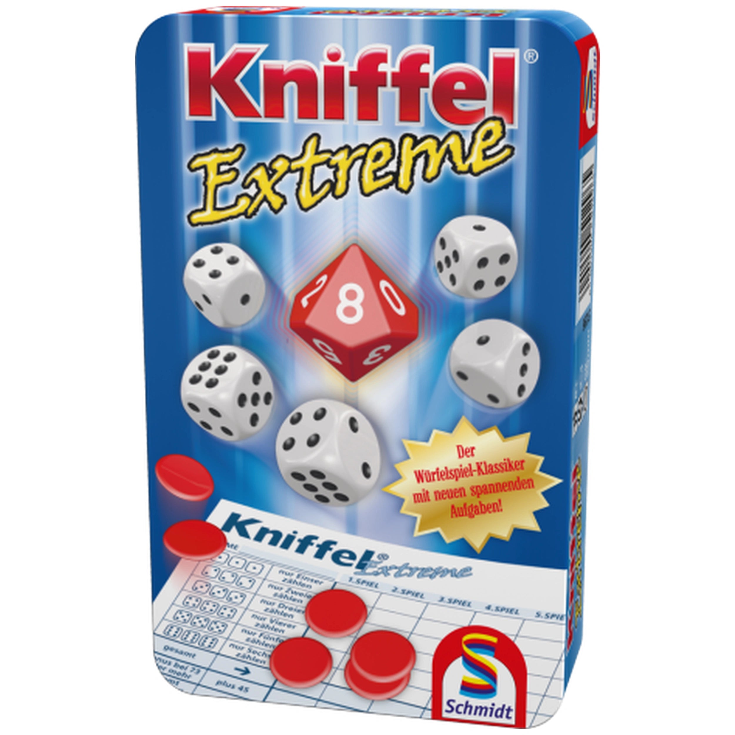 Introducing Schmidt Spiele - Kniffel Extreme, an exhilarating twist on the classic dice game that has captivated families for generations. This innovative version of Kniffel® takes the beloved gameplay you know and love and elevates it with exciting new elements that promise to enhance your gaming experience. With its unique ten-sided die, Kniffel Extreme introduces a fresh dynamic that keeps players on their toes and adds an extra layer of strategy to each roll.