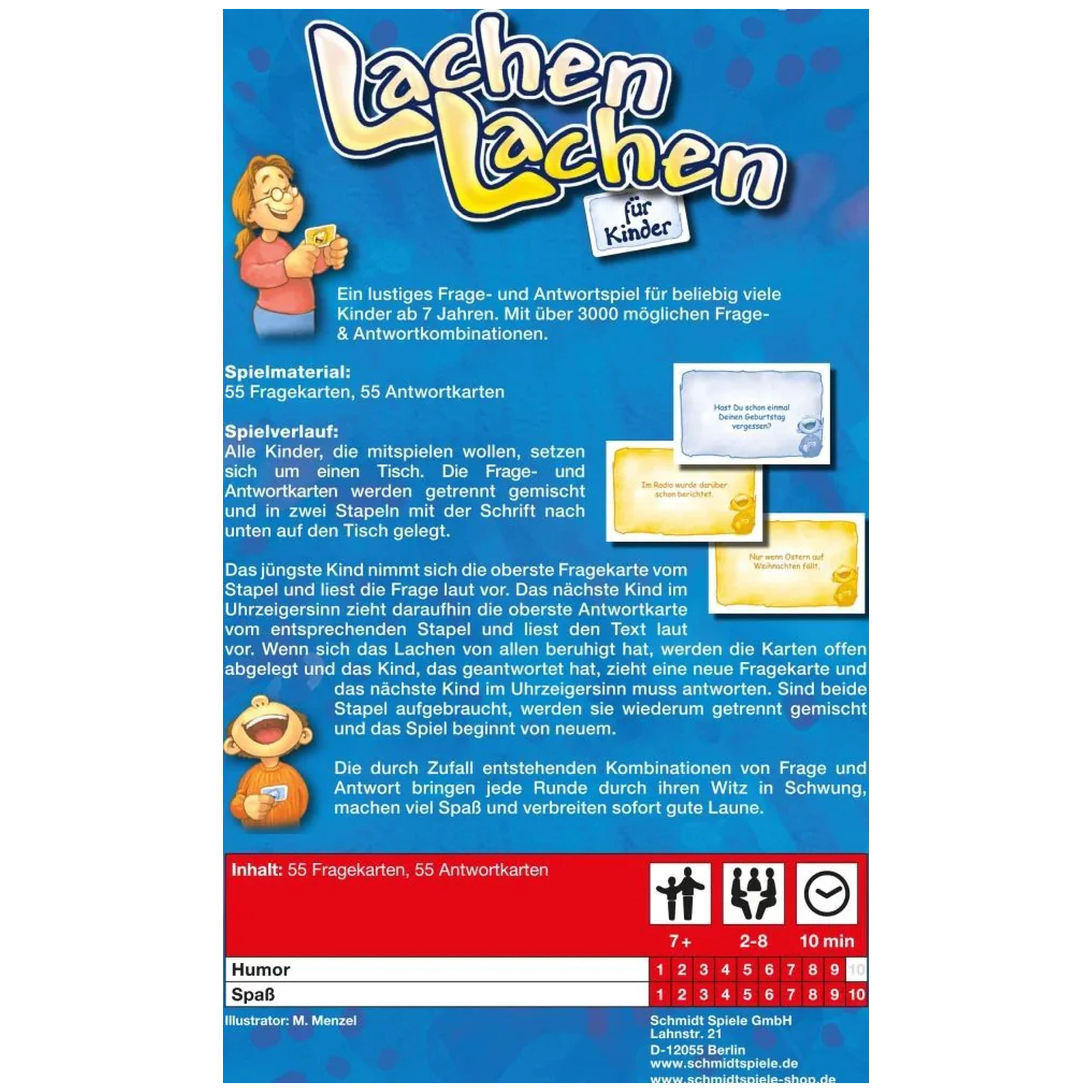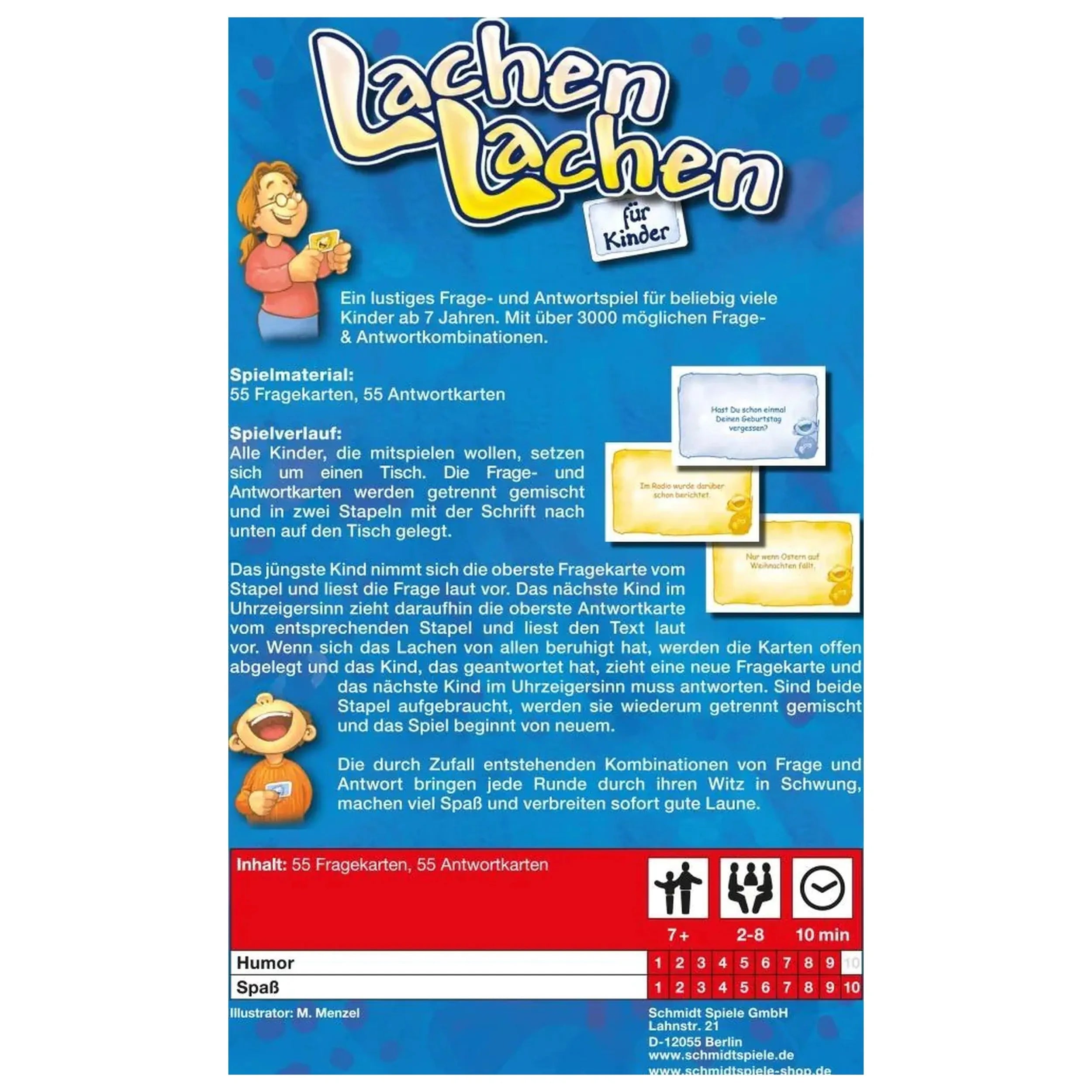 The heart of "Laughter Laughter" lies in its expansive array of 2,700 possible question-and-answer combinations. Each round presents players with a new opportunity to express their wit and imagination. The questions are crafted to be playful and thought-provoking, ensuring that children are not only entertained but also engaged in a light-hearted exchange of ideas. This game is designed for any number of players, making it versatile for both small and large groups.
