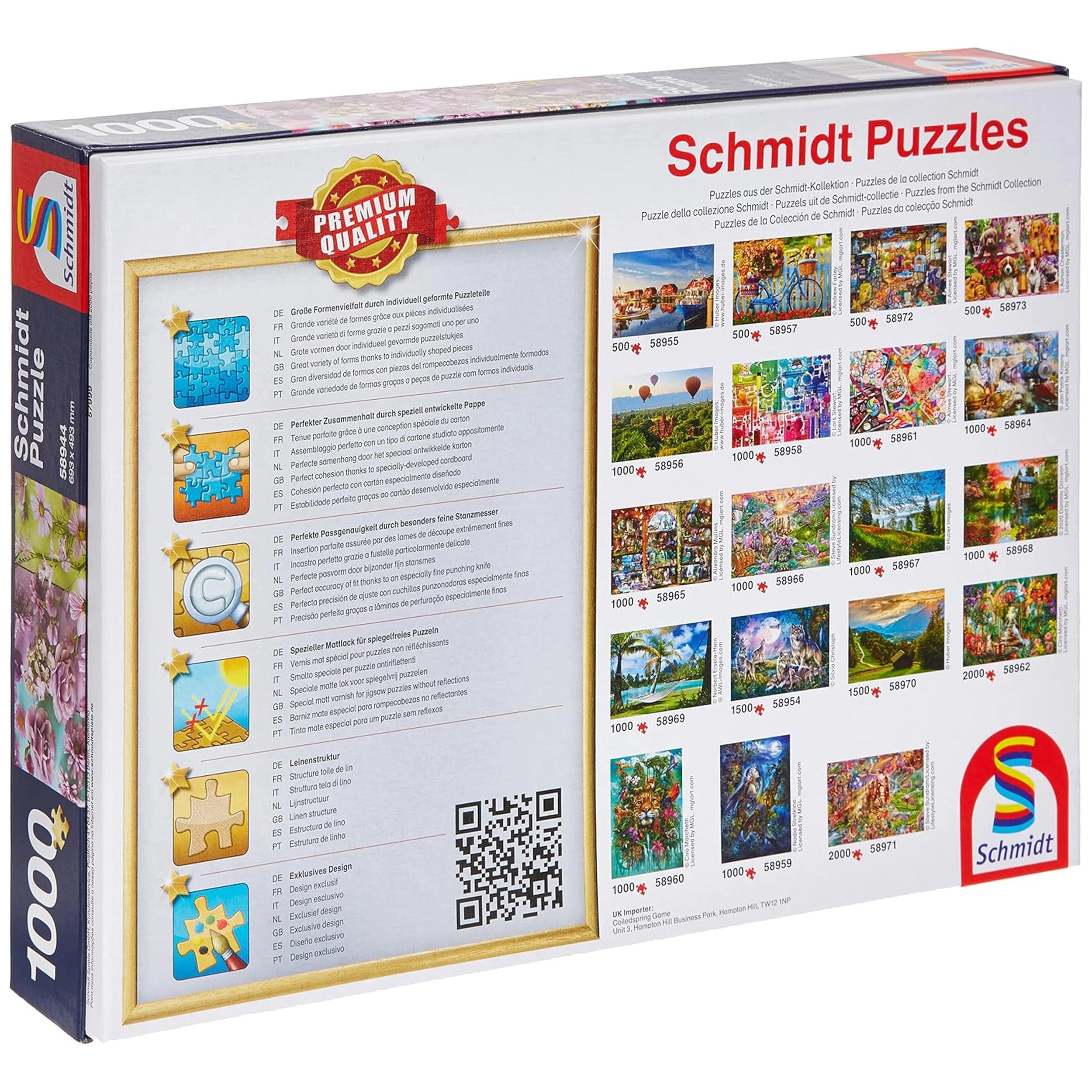 Quality is at the forefront of the Schmidt Spiele brand, and the Violet Blossoms puzzle exemplifies this commitment. Each piece is made from durable, eco-friendly materials, ensuring longevity and a perfect fit. The high-gloss finish on the artwork enhances the vibrant colors, making the flowers come alive as you work on assembling the puzzle. This attention to detail not only elevates your puzzling experience but also ensures that the finished product is a beautiful representation of your hard work.