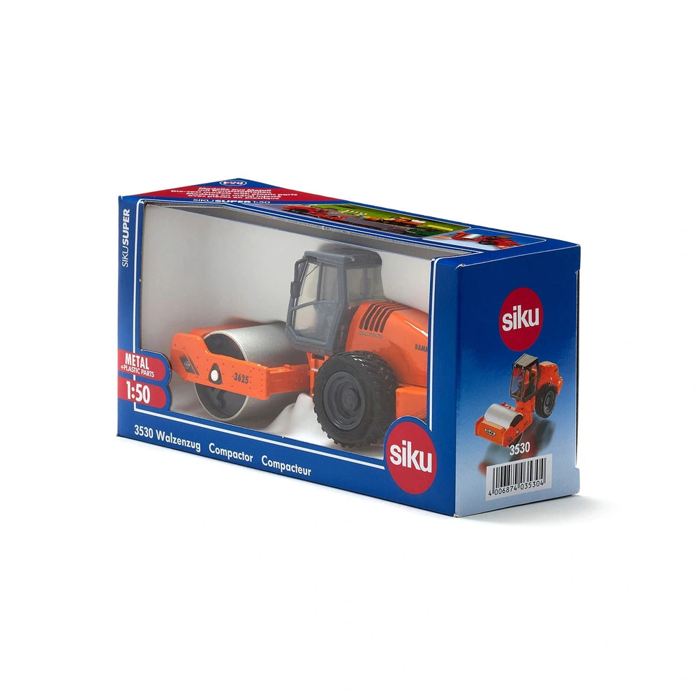 Introducing the Siku Compactor Play Vehicle, a meticulously crafted toy model that brings the world of construction to life for children and collectors alike. This vibratory roller train, produced by the renowned Hamm brand, is designed at a precise scale of 1:50, making it an impressive addition to any playroom or display. With its attention to detail and high-quality construction, this model sets a new standard in the realm of toy vehicles.