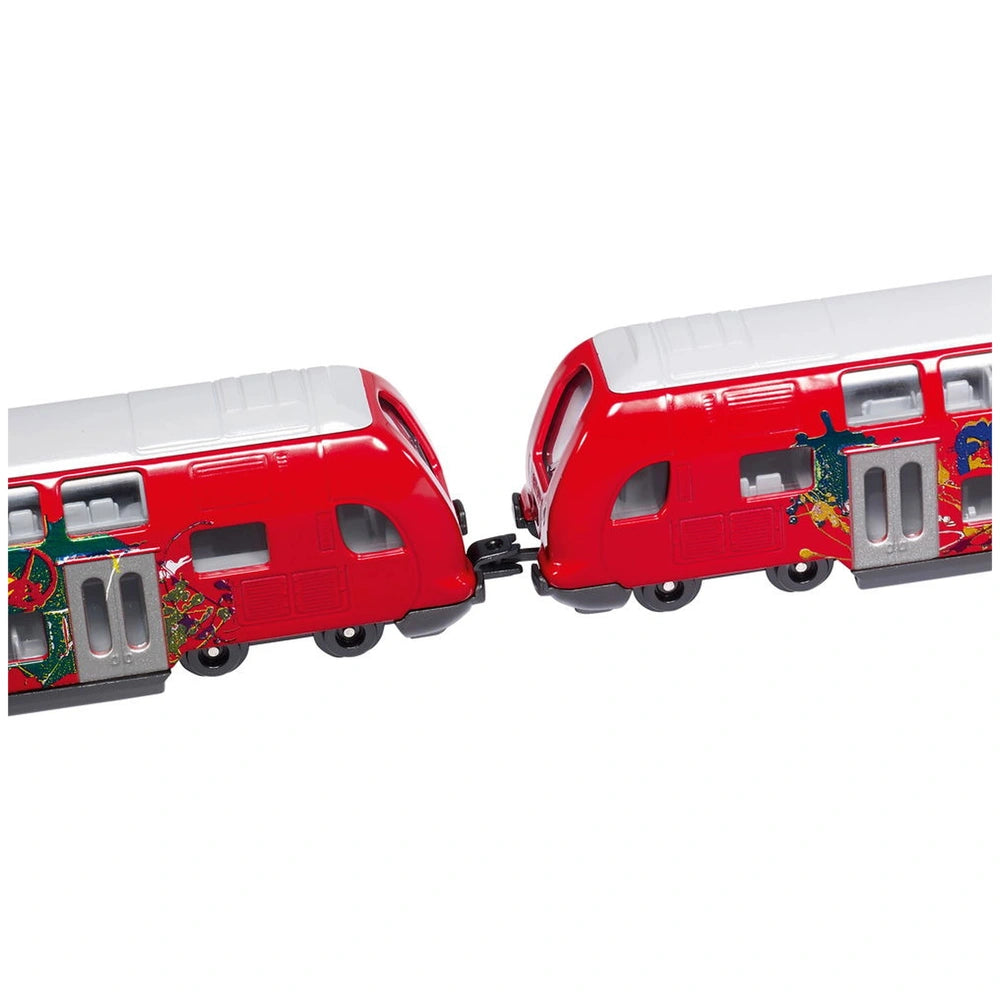 Introducing the Siku Double-Decker Train, a remarkable addition to the world of play vehicles that promises to ignite the imagination of children and collectors alike. This meticulously crafted model is designed to replicate the charm and functionality of real-life double-decker trains, making it an essential piece for any transport enthusiast's collection. With its vibrant graffiti detailing and robust metal construction, this train not only serves as a toy but also as a stunning display piece.
