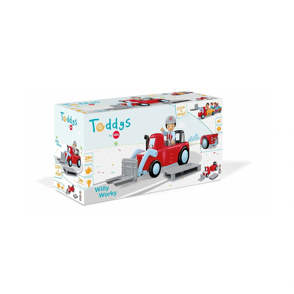 Introducing the Siku - Willy Worky - Toddys Construction Set Toys, a delightful and engaging playtime experience designed for children aged 1 to 5 years. This exceptional toy set features Willy, a skilled craftsman who joyfully tackles various tasks on his farm, alongside his trusty friend Worky, the farm loader. Together, they embark on exciting adventures, from repairing barn doors to transporting essential supplies, all while fostering creativity and imaginative play in young minds.