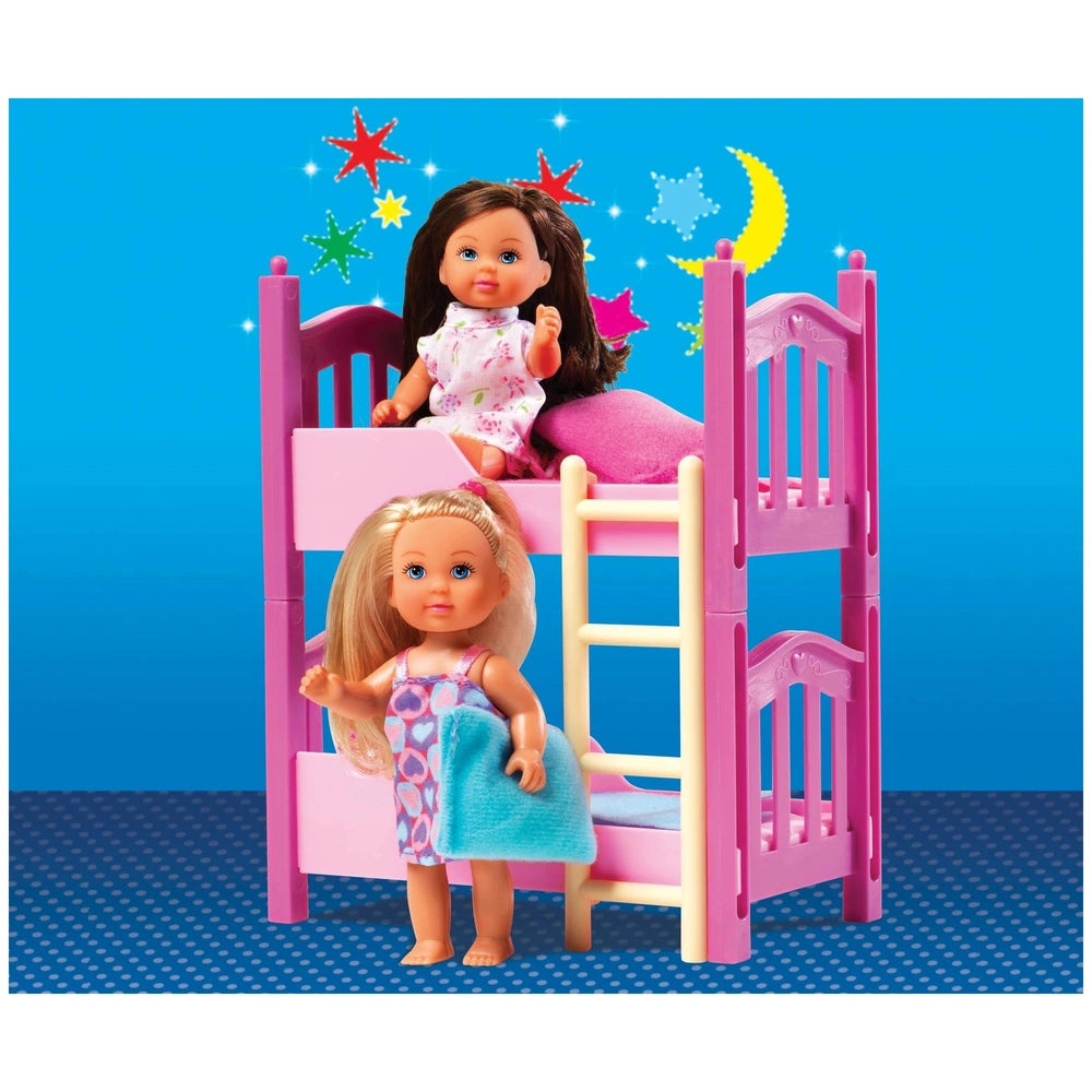 The Evi LOVE 2 Floor Bed features a unique bunk-bed design that can be effortlessly transformed into two separate single beds. This versatility encourages children to explore various scenarios in their imaginative play, whether it's a sleepover with friends or a cozy night in. The included nightdresses for the Evi dolls add an extra layer of realism, allowing children to dress their dolls for bedtime, fostering a sense of responsibility and care.