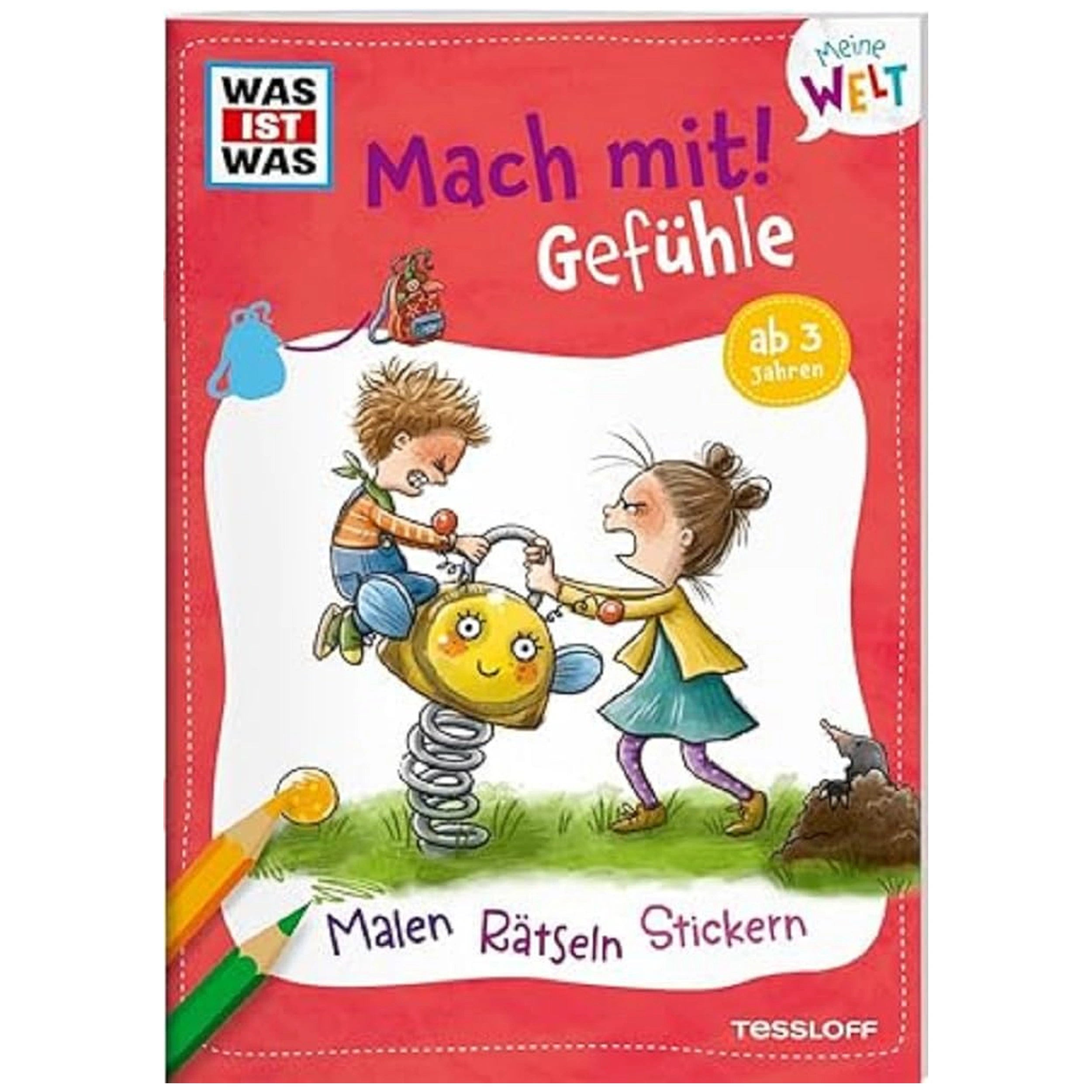 Introducing the TESSLOFF - WAS IST WAS Meine Welt Mach mit! Gefühle, an engaging activity book designed for children aged three and up. This delightful resource invites young learners to explore the complex world of emotions in a playful and interactive manner. With vibrant stickers, captivating coloring pages, and stimulating puzzles, this book serves as an excellent tool for children to understand and express their feelings, making it an essential addition to any child's learning journey.