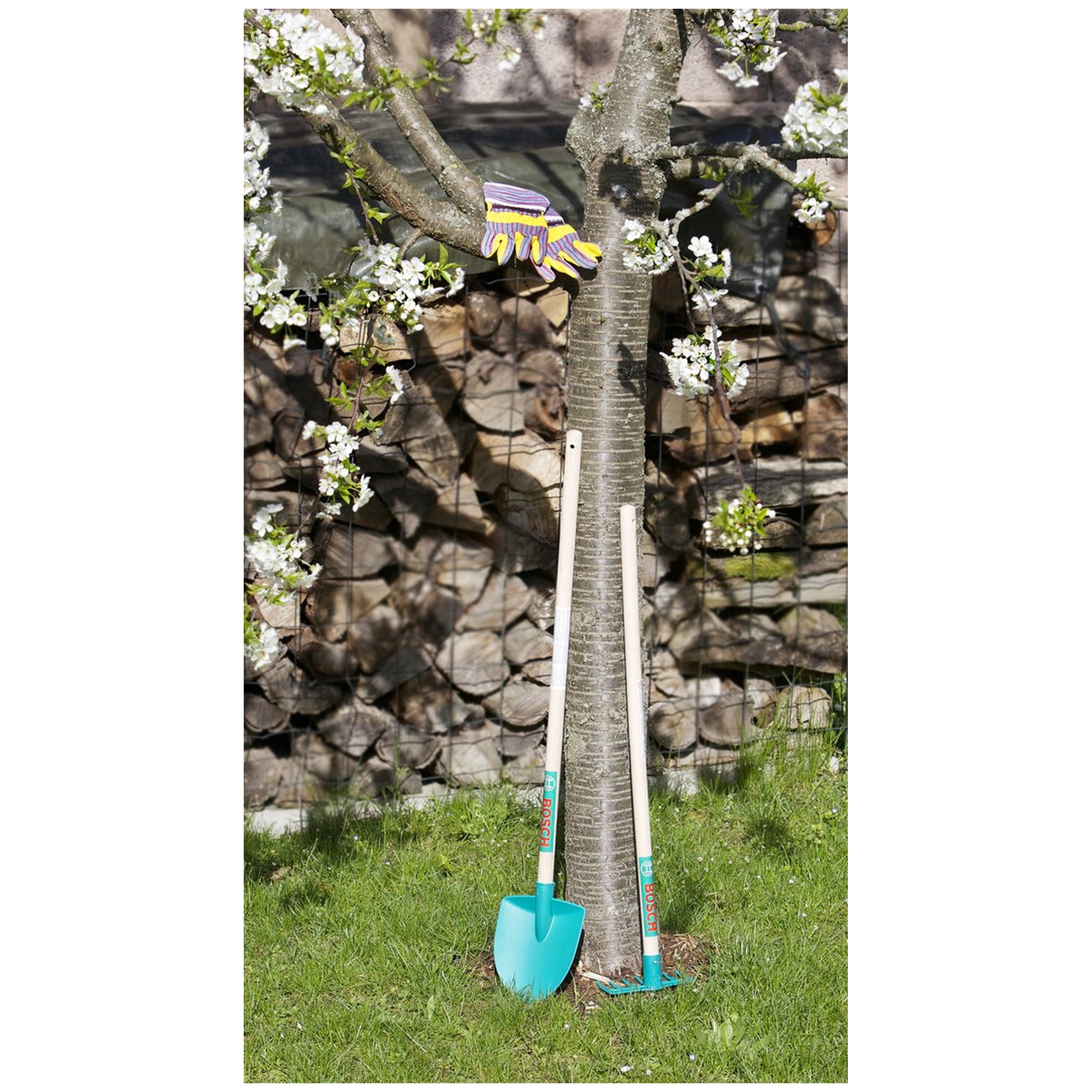 The **Bosch Gardener Set** includes a robust shovel and rake, both featuring sturdy wooden handles that are easy for little hands to grasp. Each tool is designed to withstand the rigors of outdoor play, ensuring that your child can dig, rake, and explore the garden just like a real gardener. The shovel measures an impressive 87.5 centimeters in length, while the rake is 75 centimeters long, making them perfectly sized for children. Additionally, both tools come equipped with practical eyelets for easy hanging, allowing for convenient storage after a fun day of gardening.
